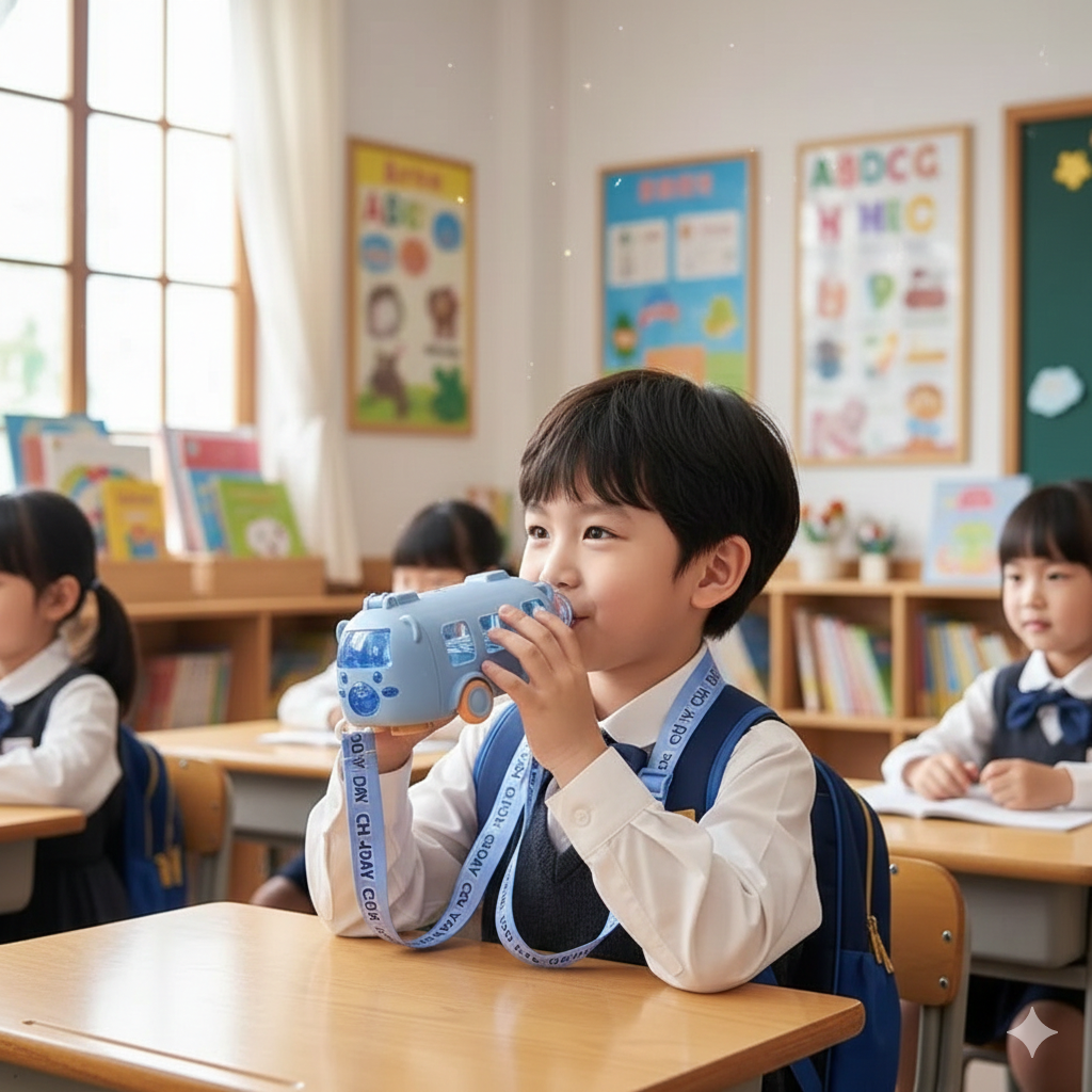 Leak-Proof & Safe: Iska dhakkan (lid) bilkul airtight hai, taake bag mein pani girne ka dar na ho. Ye high-quality, BPA-free material se bani hai jo bacchon ki sehat ke liye bilkul safe hai.
